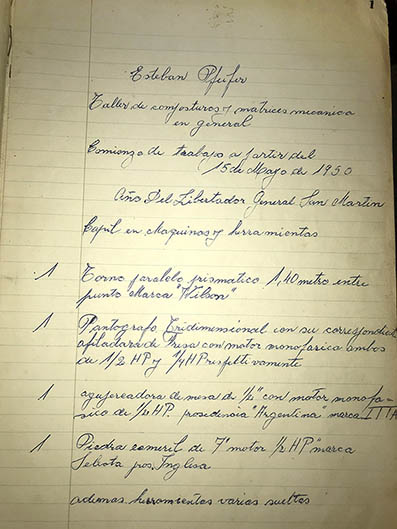 Comienzo de trabajo a partir del 15 de Mayo de 1950, año Del Libertador General San Martín.